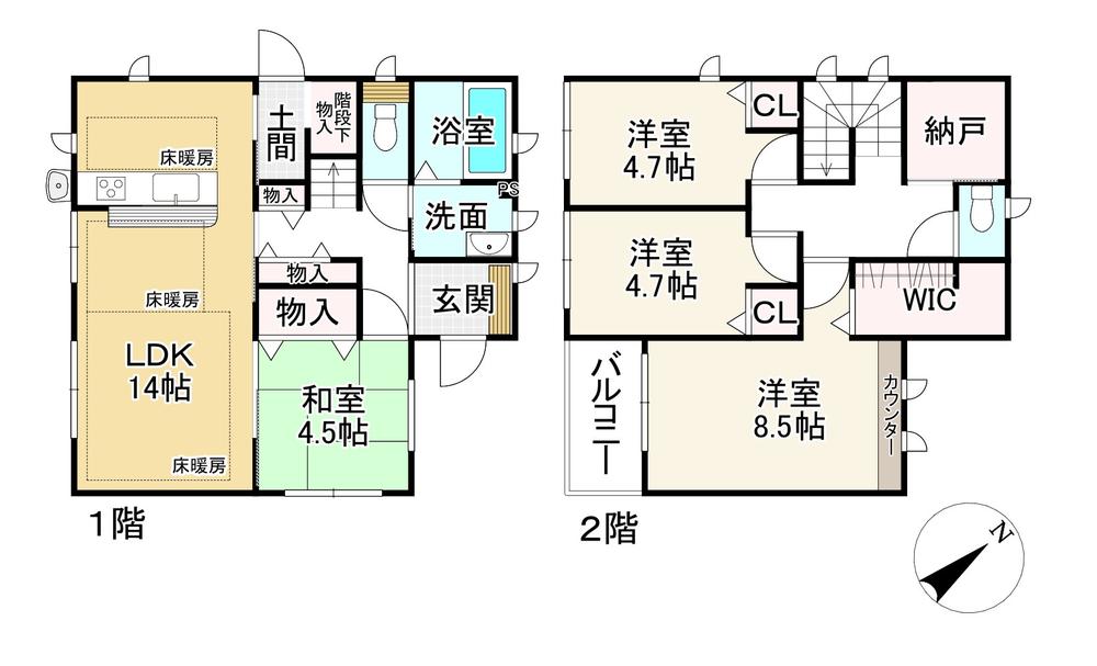 | 設備・条件 | 水道:公営/ガス:都市ガス/排水:下水/システムキッチン/追い焚き風呂/床下収納/W.INクローゼット/バルコニー/駐輪場/床暖房/TVモニター付インターホン/浴室乾燥機/収納スペース有/玄関ポーチ |